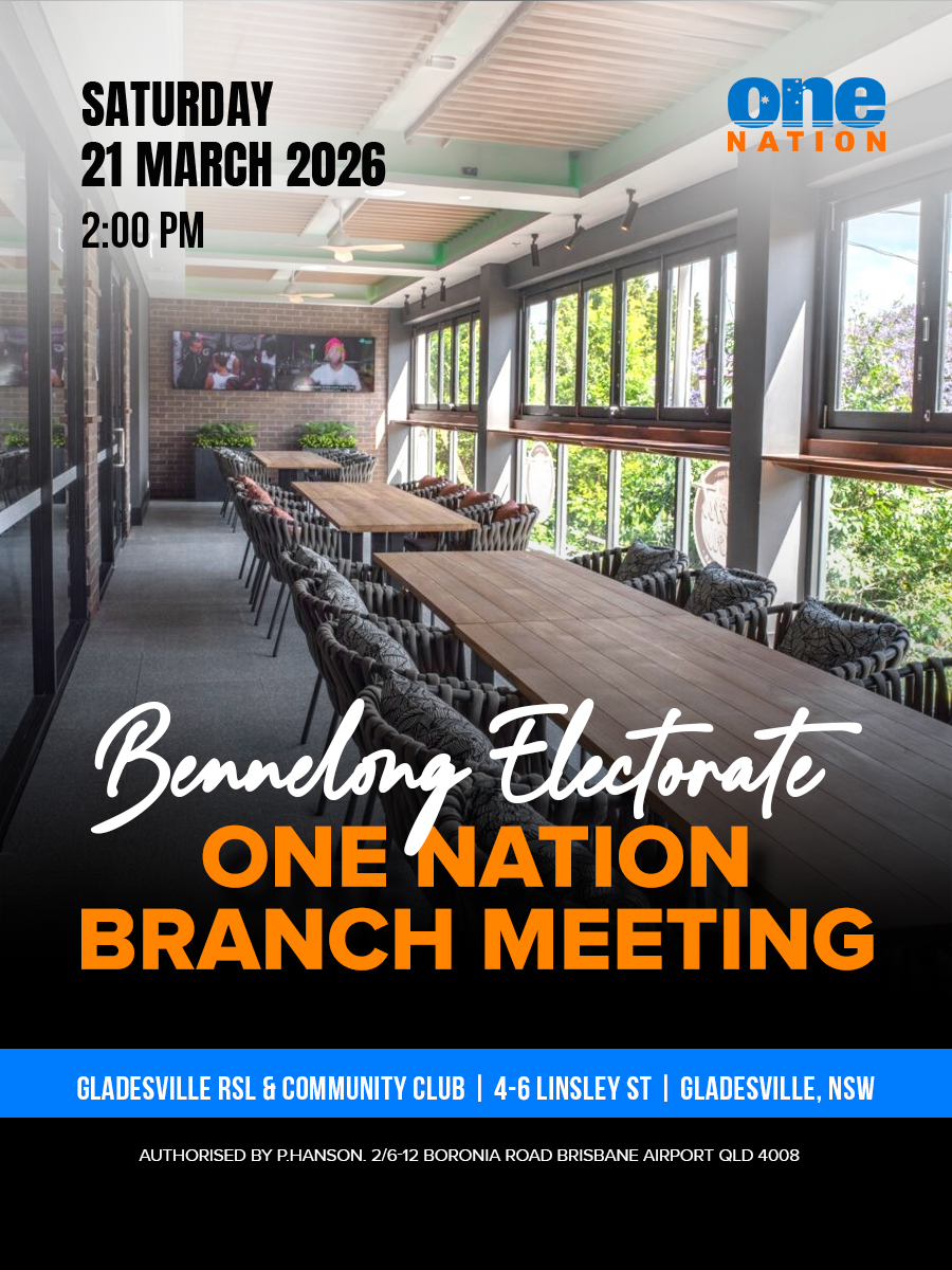 Join us for the Bennelong One Nation Branch Meeting on Saturday, 21 March 2026 at 2:00 PM. This meeting provides an opportunity for members and supporters to hear updates, discuss local matters, and connect within the electorate.