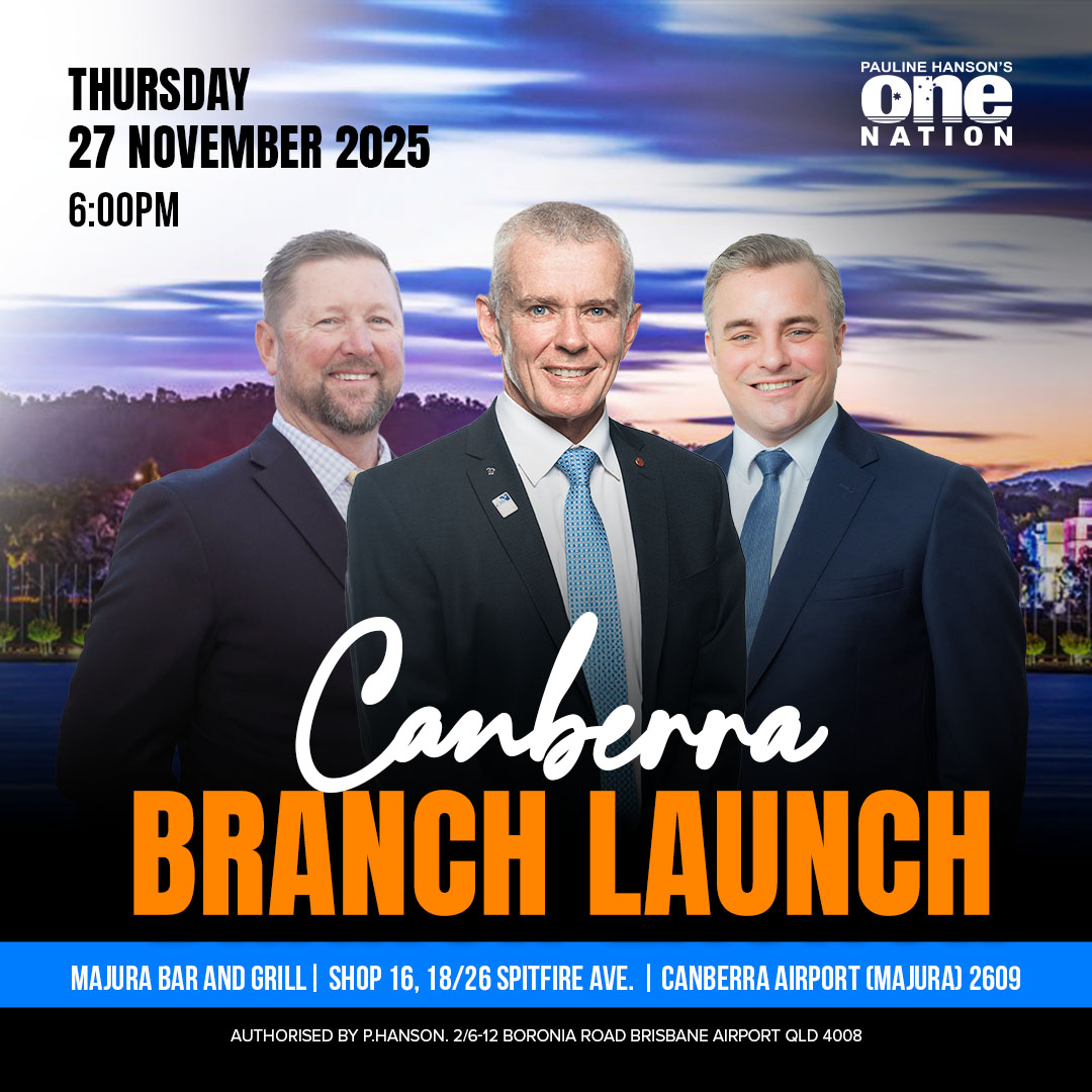 Join Pauline Hanson’s One Nation for the Canberra Branch Launch on Thursday, 27 November 2025, at 6:00 PM.