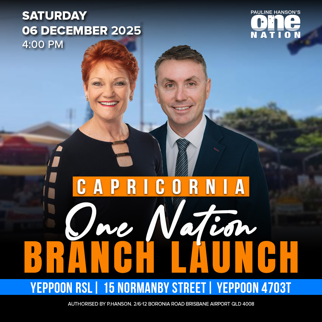 Meet Senator Pauline Hanson and James Ashby, and other Political Representatives of One Nation as we officially launch the new Capricornia Branch. Learn about local initiatives, connect with fellow supporters, and help shape the future of One Nation in the region.