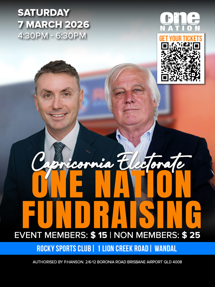 This special event will be held on Saturday, 7 March 2026 from 4:30 PM to 6:30 PM at Rocky Sports Club, 1 Lion Creek Road, Wandal. Tickets are $15 for members and $25 for non-members. Come along to hear from our speakers, connect with supporters, and help strengthen One Nation’s presence in Capricornia.