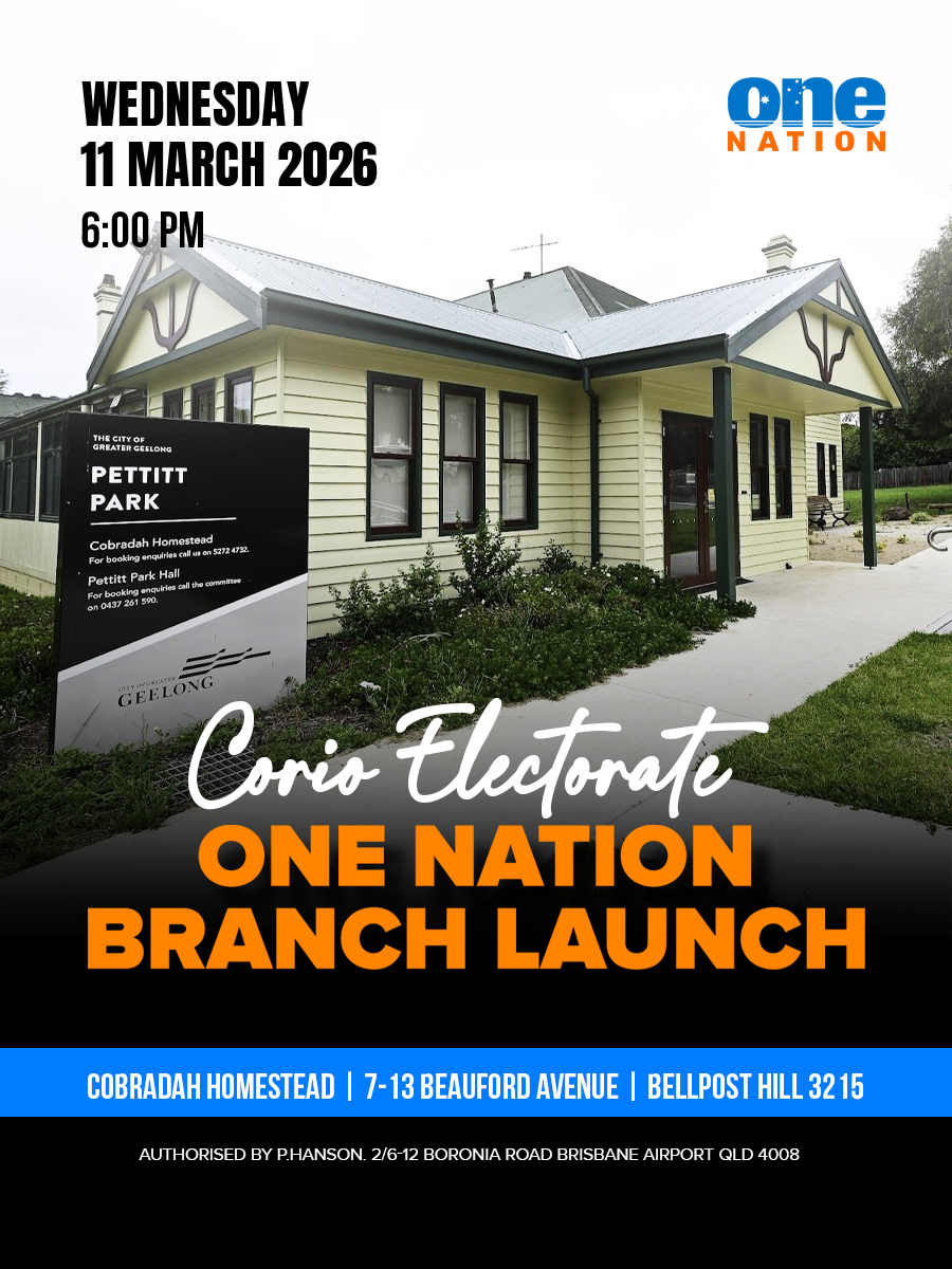 Members and supporters are invited to attend the official Corio Electorate One Nation Branch Launch, marking an important step in building and strengthening One Nation’s presence within the Corio electorate.
