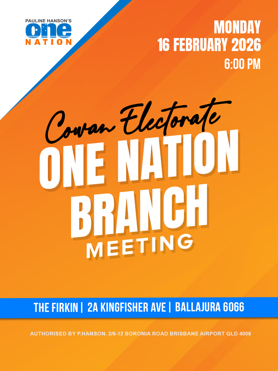 Members and supporters are invited to attend the Cowan Electorate One Nation Branch Meeting, an opportunity to come together, connect locally, and discuss matters relevant to the Cowan electorate.