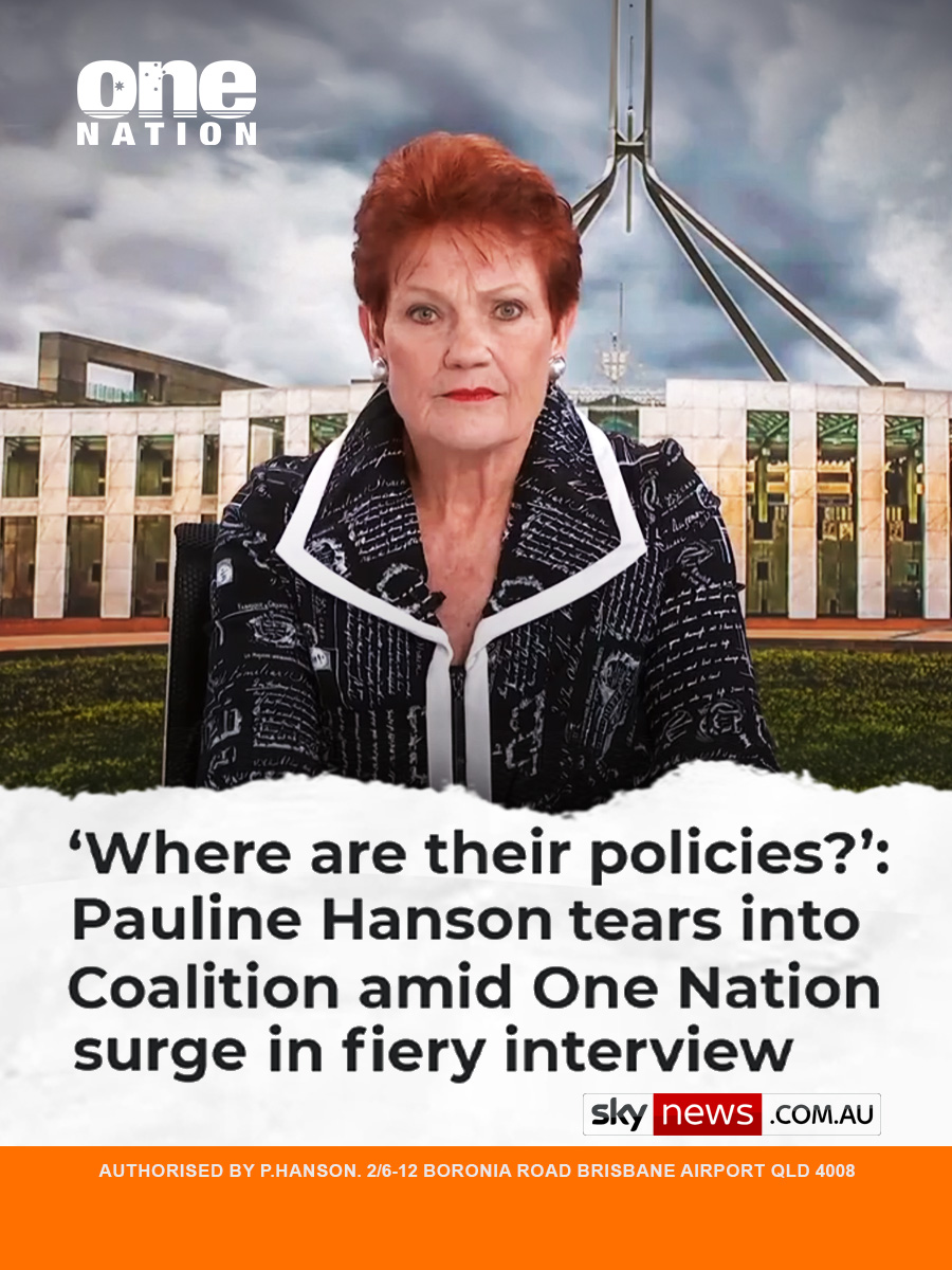 "Where are their policies?": Pauline Hanson tears into Coalition amid One Nation surge in fiery interview