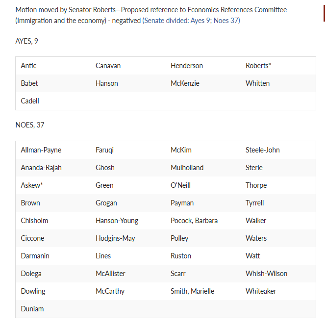 One Nation moved for an inquiry into mass migration during Senate debate this week. Labor, Liberals, the Greens voted against, and only a handful of other supported this crucial inquiry. Review here how Senators from your state voted. One Nation won't give up.