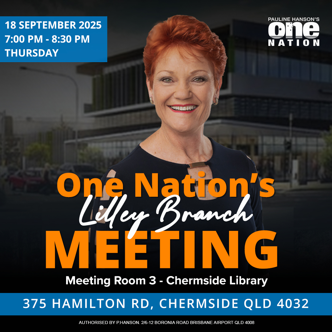 Join us for the Lilley Branch Meeting on Thursday, 18 September 2025 at Chermside Library. This meeting is your chance to connect with like-minded locals, discuss the key issues facing our community, and learn how you can play a role in shaping the direction of One Nation in Lilley.