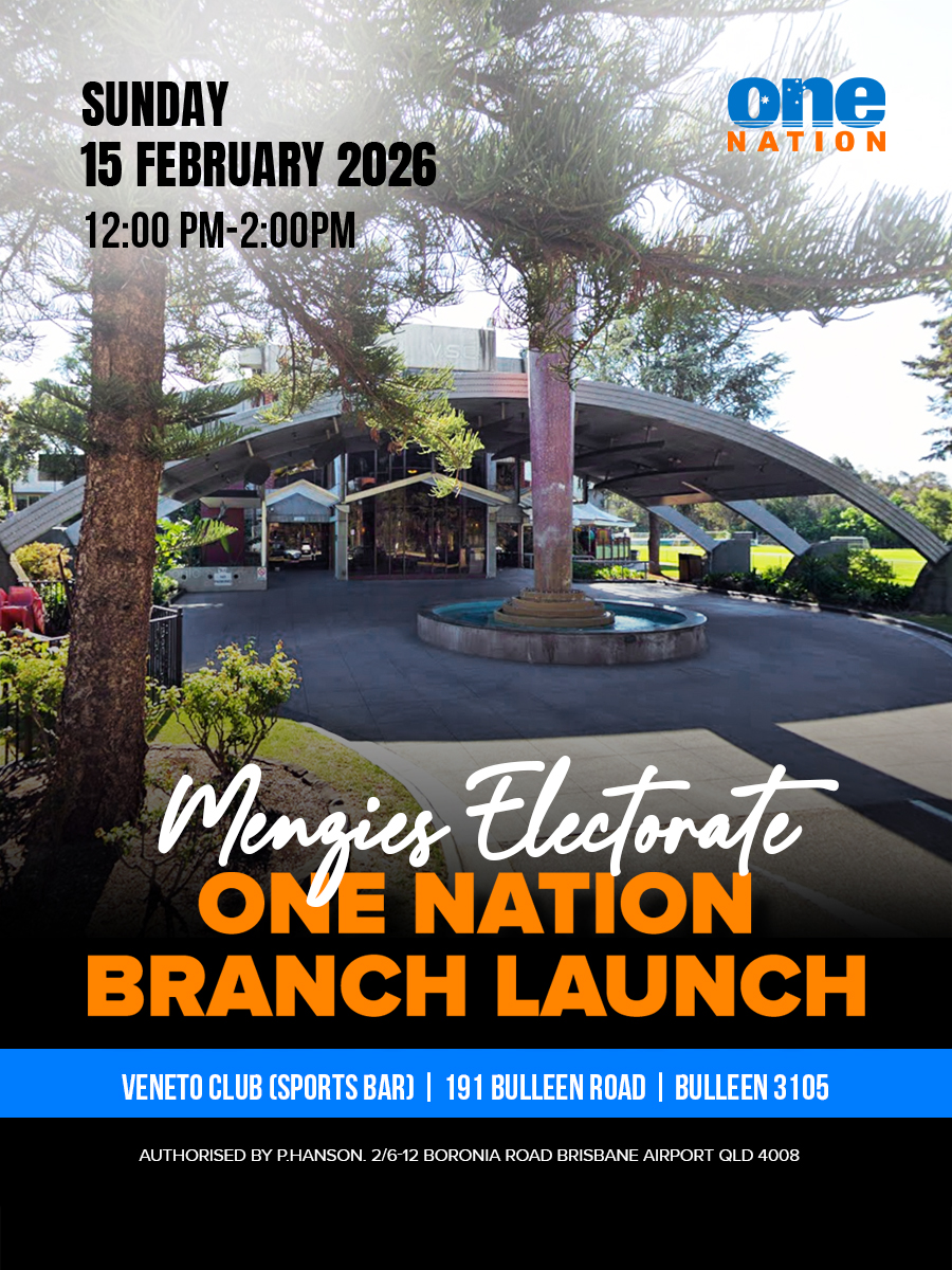 Members and supporters are invited to attend the Menzies Electorate One Nation Branch Launch, marking an important milestone in establishing and strengthening One Nation’s presence within the Menzies electorate.