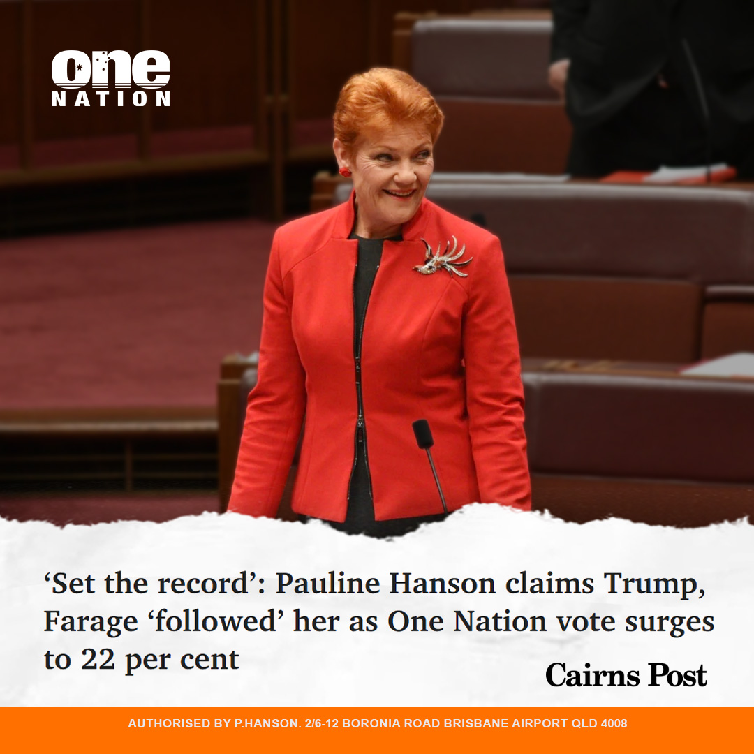 One Nation has always said it plainly: Pauline’s policies were the ones copied, here and overseas.